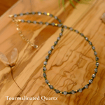Tourmalinated Quartz: faceted Tourmalinated Quartz with golden Hematite and drops of olive green.